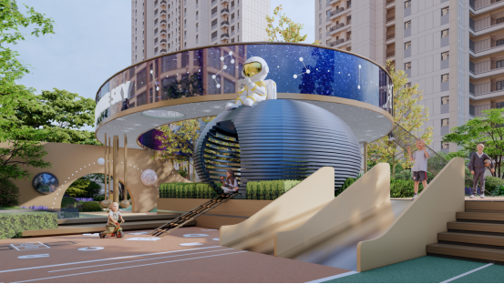 君一海尚府以“以人为本,全龄共享”理念,西苑依托台地高差,打造泉城规模最大“星际之城”儿童主题乐园,以宇宙探索为主题,激发想象力的全龄活动空间;东苑静享花园,林间卡座、漫氧书吧,营造精致的精神休憩地。