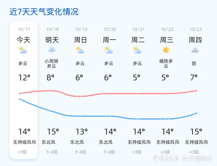 明天(10月18日),滨州天气将由小雨转为多云,气温略有下降,最低气温8℃,最高气温15℃,东北风3-4级。与今天相比,降雨将逐渐减弱,但风力有所增强,市民需注意防风保暖。
