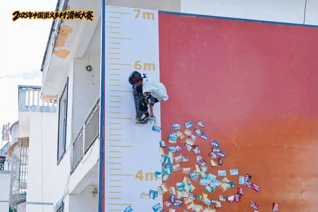 来到垂直高度6米的滑板墙下