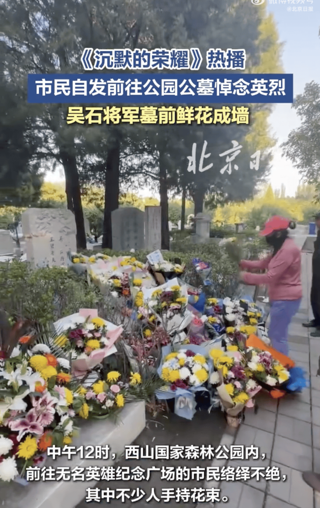 据媒体报道,在北京西山国家森林公园和福田公墓,也有不少市民自发前往献花祭奠,缅怀英烈。