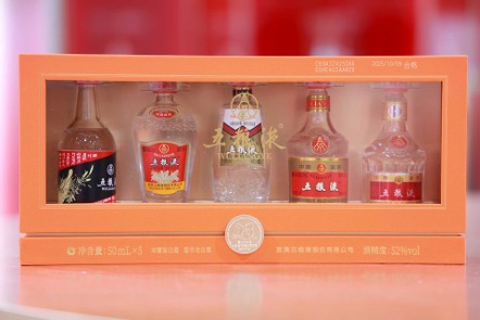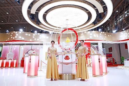 作为本届酒博会的特许产品,“五粮液·岁月鎏金”小酒礼盒承载着品牌百年匠心与酒博会的专属荣耀。