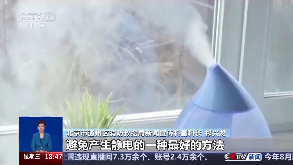 北京市通州区消防救援局新闻宣传科副科长 祁兴龙:第一就是操作人员的着装、他的劳保设施需要具有防静电功能,甚至于部分场所需要佩戴防静电手环、防静电脚环等这些相关的设施来预防静电的产生和及时地将静电导出。那么另外一个方式,这些场所内都会有一些静电导出的装置,在我们操作相关设施或者进入相关场所时,需要触碰这些设施,将身体的体内静电导出,避免发生静电,发生电火花造成危险。